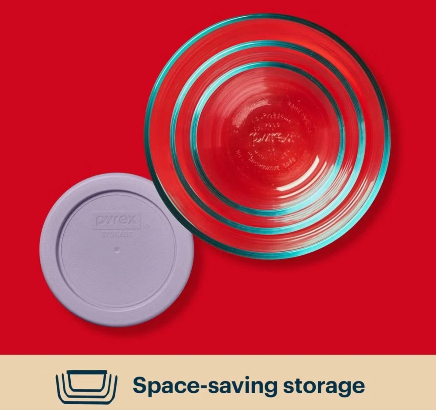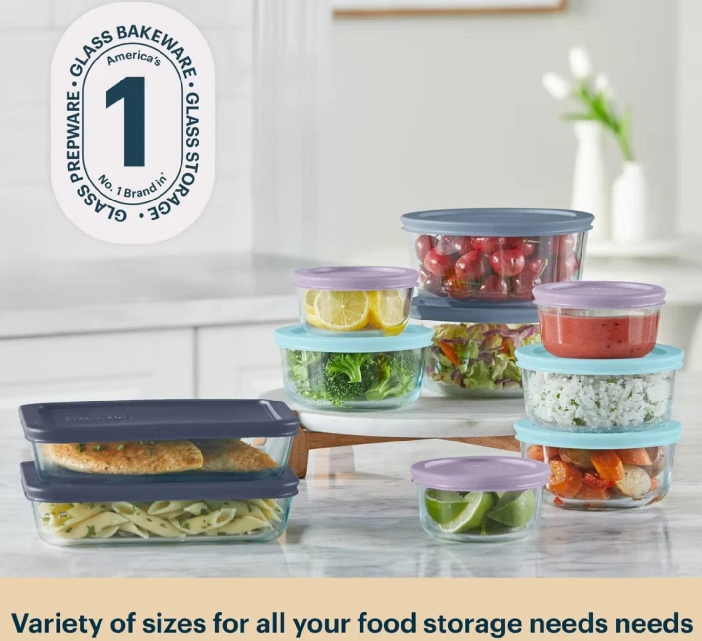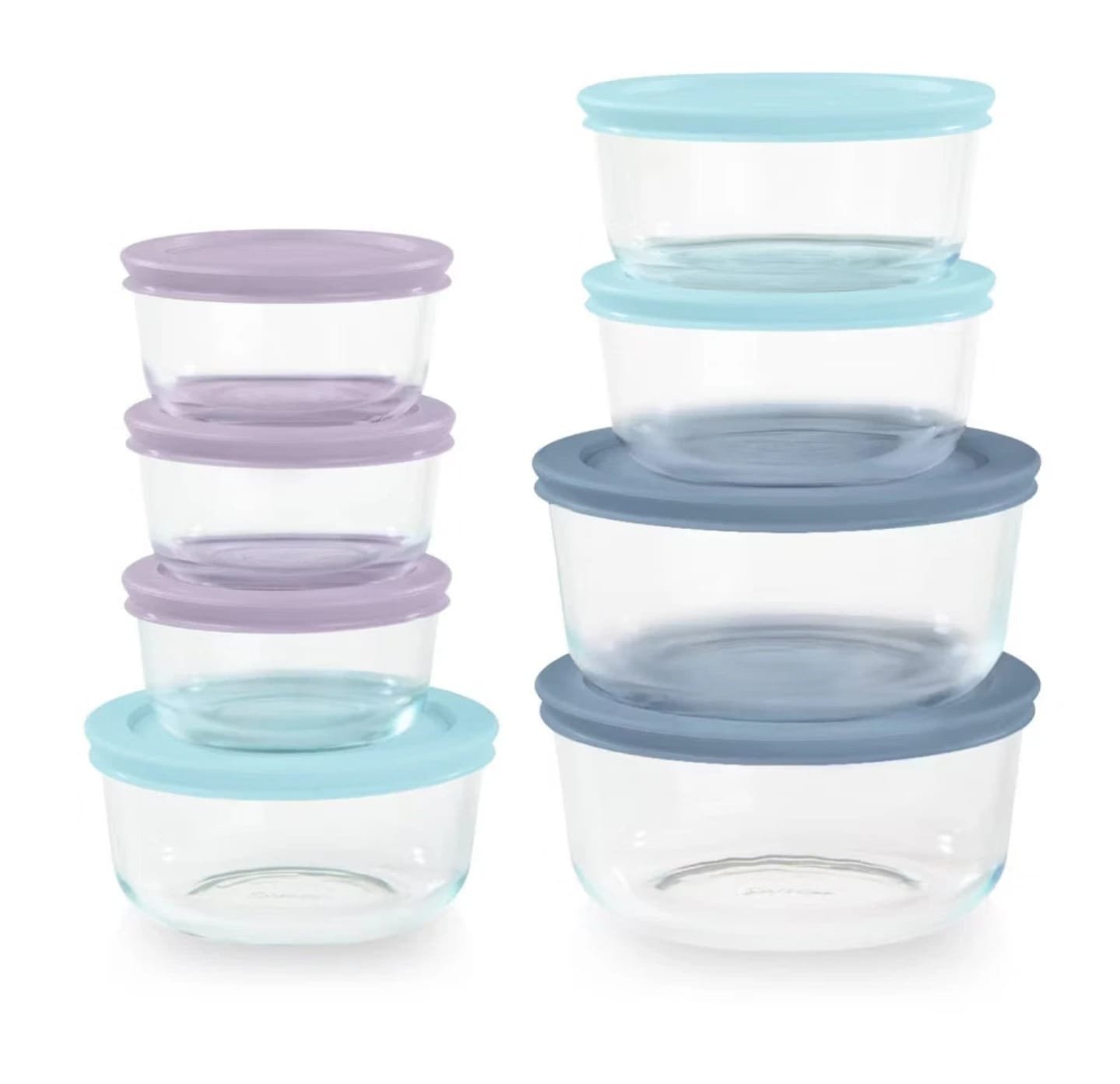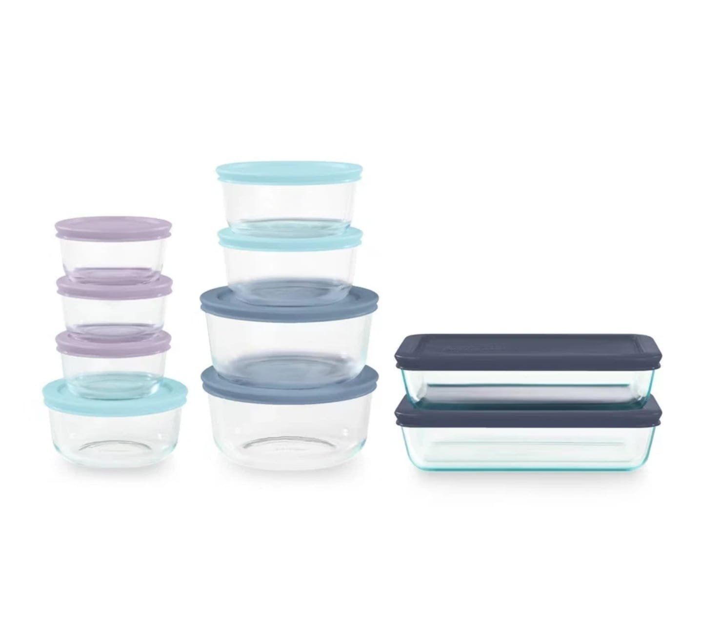 With a variety of sizes in round and rectangular shapes, these versatile glass storage containers are perfect for storing everything from snacks to lunch, in your pantry, fridge or freezer. The tight-fitting BPA-free lids help keep food fresh, both at home and on the go. Made from durable, heat-tempered Pyrex glass, you can heat food in the microwave or pre-heated oven (without the lid in the oven) and then clean in the dishwasher use after use. For storing, nest the smaller containers inside the larger ones to save space. The containers are stain- and odor-resistant, so they stay clean and preserve your food’s fresh flavors. Whether storing meals made ahead, or holding yummy snacks and leftovers, these glass containers are perfect for the job.